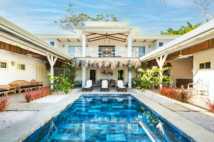 Casa Karibe es una lujosa villa de más de 500 m², diseñada por un renombrado decorador, ubicada en una residencia privada y segura en Tamarindo.